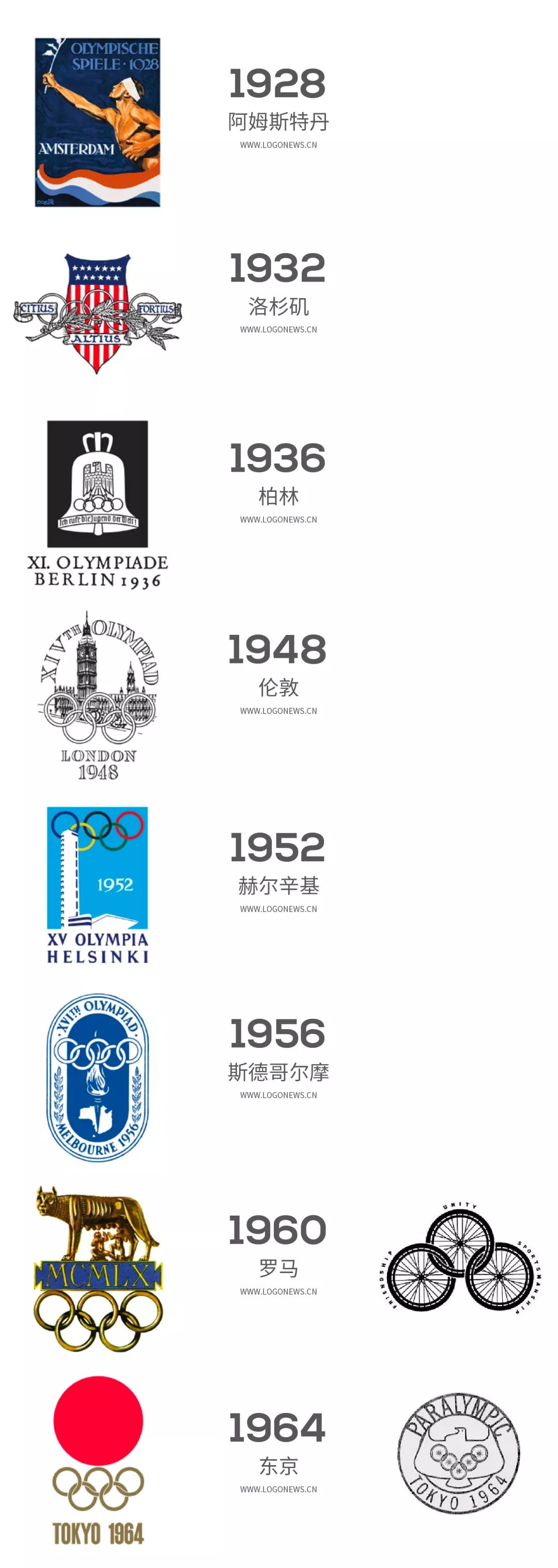 文末附上歷屆夏季奧運會和殘奧會會徽設計,注意的是,1960年殘奧會才開始舉辦。