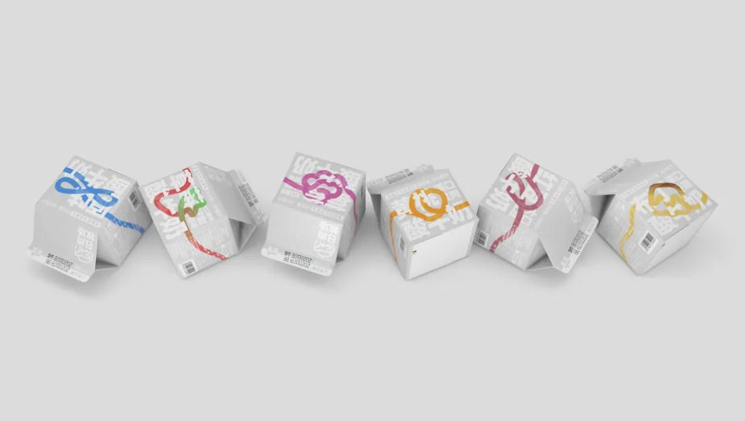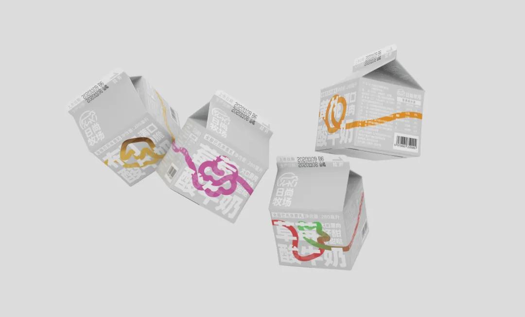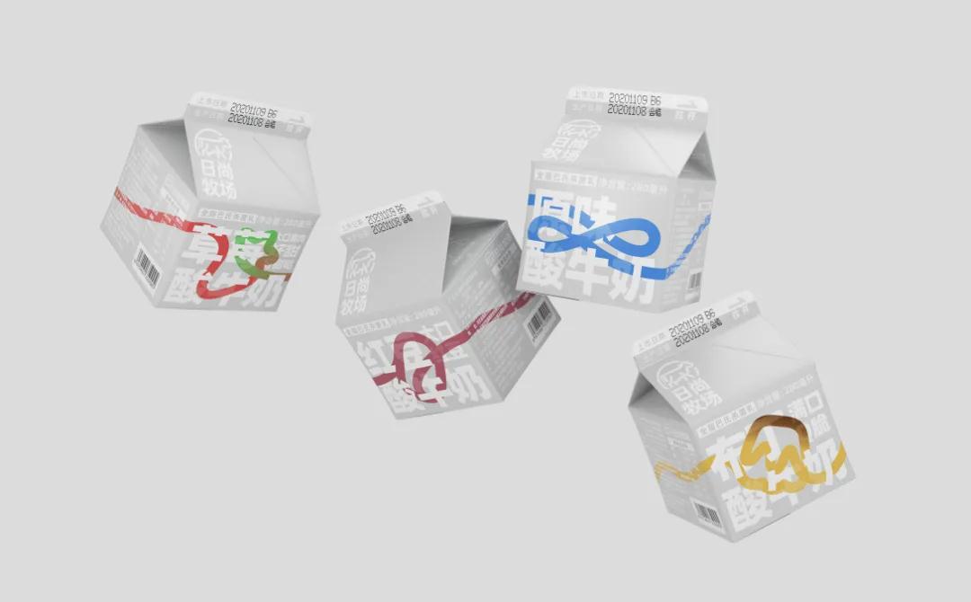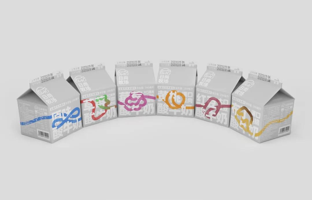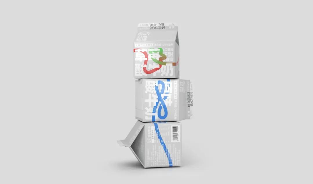 這款酸奶包裝設計,簡約、現代且獨特。有多種口味,根據不同口味繪制了圖形,這些圖形又匯聚成一條彩繩,格外醒目,鮮明且生動,象征著產品成分的純粹和原料的新鮮。