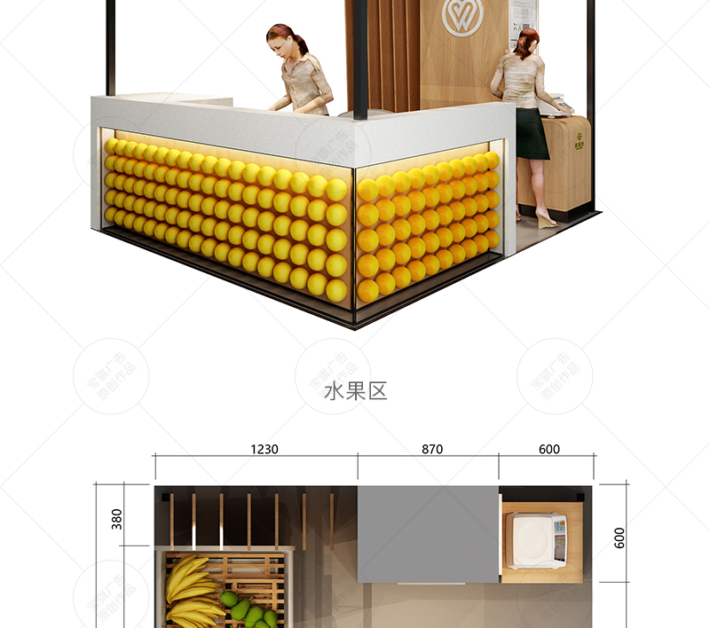 該店水果區原有環境較為雜亂,功能上也有一定缺失,武商超市希望通過空間改造,在此區域為顧客提供更為良好的購物體驗,并提供稱重、洗切、打包等人性化服務。